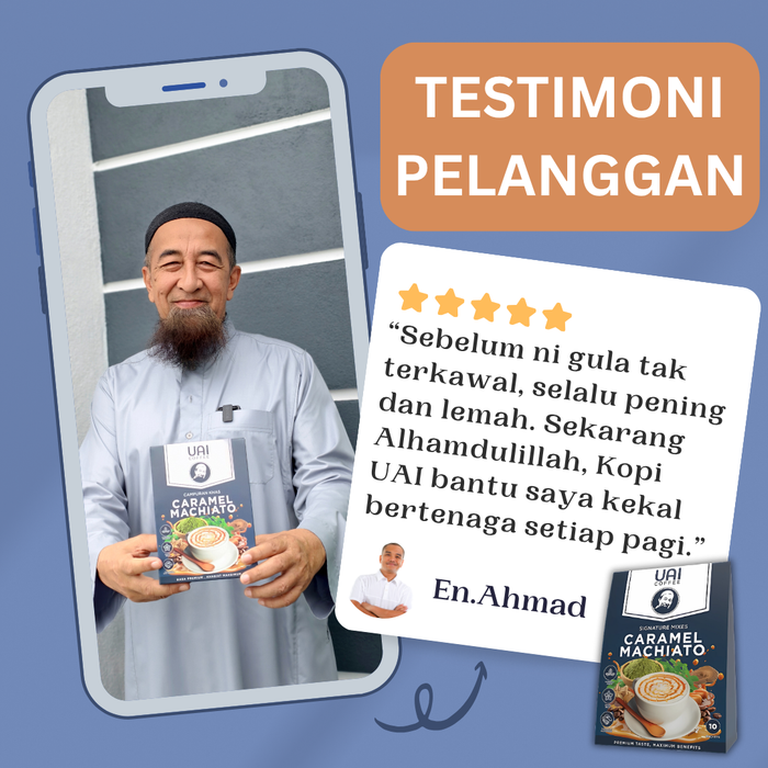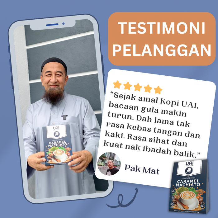 Boleh, sebab ramuan herba UAI Coffee diformulasi khas untuk bantu tenaga dan kawalan gula.