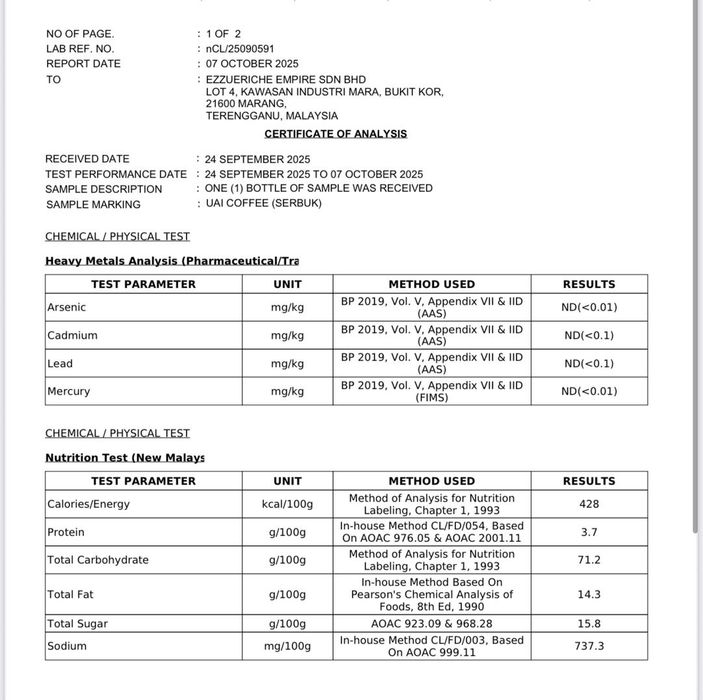 UAI Coffee diformulasikan daripada ramuan semula jadi seperti: